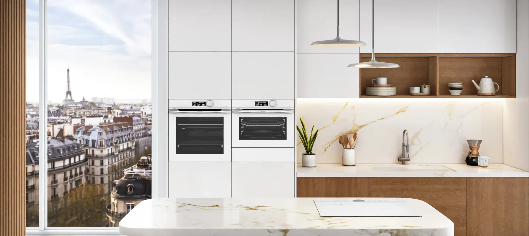 Un'armonia senza tempo di bianco e acciaio inossidabile per una partitura musicale piena di purezza ed eleganza. Il classicismo immacolato del bianco è scandito da dettagli in acciaio inox spazzolato che catturano la luce ed evidenziando la bellezza dei materiali.
